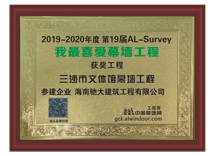 2019-2020年三沙市文體館頒發(fā)我最愛幕墻工程